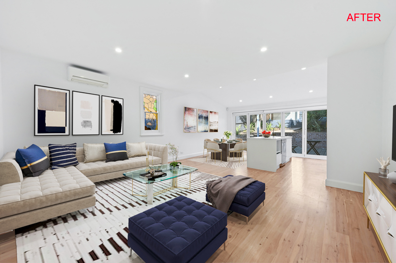 Outdated or overly personal furniture can be distracting. Virtual staging allows us to replace or neutralise decor to appeal to a broader range of potential buyers — clean, modern, and market-ready.